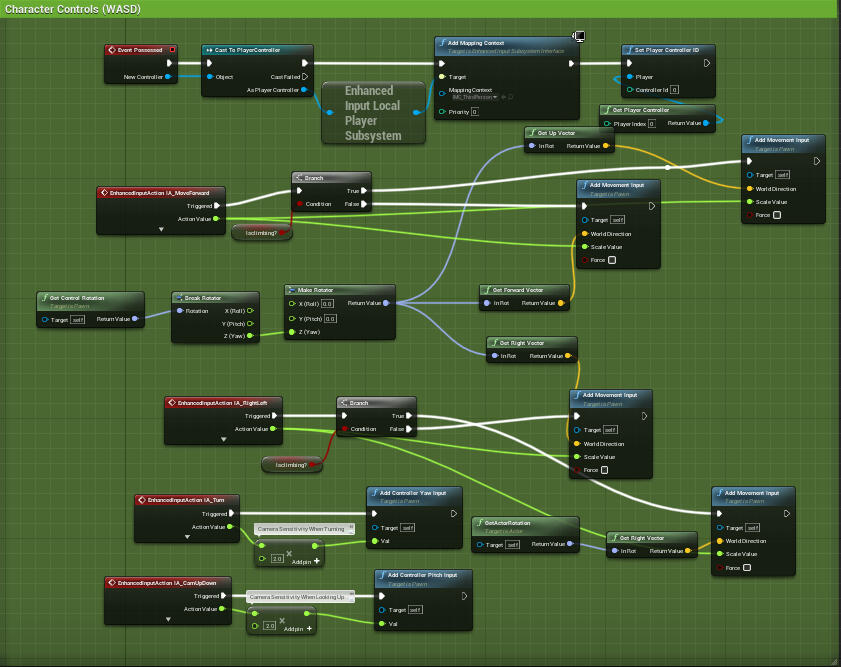 This Blueprint allows the character to move around. I was able to create this by using Unreal's Enhanced Input System.